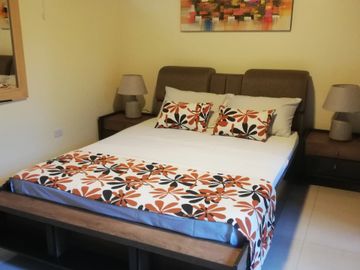 This room has a double-size bed, en-suite bathroom with raindrop shower, A/C, Ceiling Fan, mini-Fridge and personal safe.